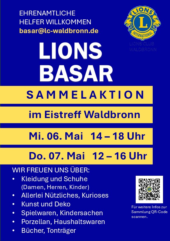 1. LIONS-BASAR am Samstag, 09. Mai 2026 im EISTREFF Waldbronn