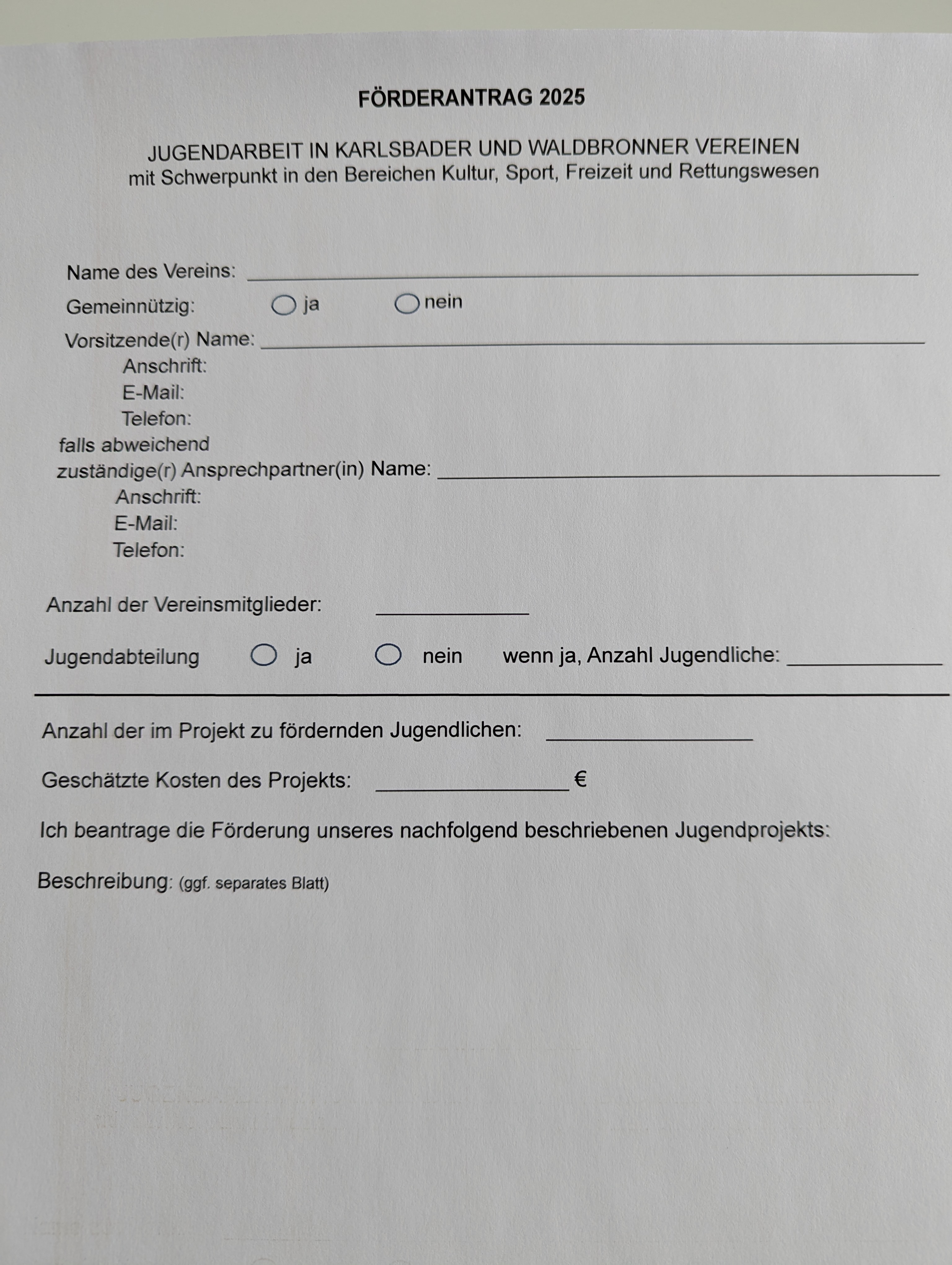 Antragsformular für die Vereinsförderung 2026